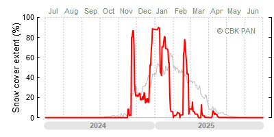 A mild winter is one where snow cover appears and quickly disappears, only occasionally covering more than 80-90 percent of the country. A good example of such a situation is the winter in Poland during the 2006/07 season, when snow appeared on a larger scale only at the turn of January and February.