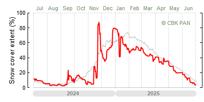 We would call a winter "harsh" if snow cover persisted for a long time and covered the largest possible area of the country. An example of such a situation in Poland is the winter of 2005/06, when snow covered almost the entire country from mid-December until the end of April. This significantly impacted the average for the entire year—statistically, on each day between July 1, 2005, and June 30, 2006, snow cover extended over as much as one-third of Poland!