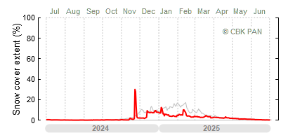 We would call a winter "harsh" if snow cover persisted for a long time and covered the largest possible area of the country. An example of such a situation in Poland is the winter of 2005/06, when snow covered almost the entire country from mid-December until the end of April. This significantly impacted the average for the entire year—statistically, on each day between July 1, 2005, and June 30, 2006, snow cover extended over as much as one-third of Poland!