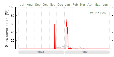 We would call a winter "harsh" if snow cover persisted for a long time and covered the largest possible area of the country. An example of such a situation in Poland is the winter of 2005/06, when snow covered almost the entire country from mid-December until the end of April. This significantly impacted the average for the entire year—statistically, on each day between July 1, 2005, and June 30, 2006, snow cover extended over as much as one-third of Poland!
