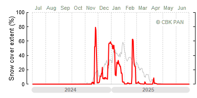 We would call a winter "harsh" if snow cover persisted for a long time and covered the largest possible area of the country. An example of such a situation in Poland is the winter of 2005/06, when snow covered almost the entire country from mid-December until the end of April. This significantly impacted the average for the entire year—statistically, on each day between July 1, 2005, and June 30, 2006, snow cover extended over as much as one-third of Poland!