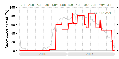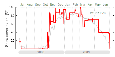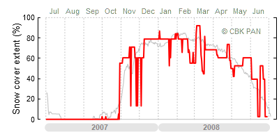 A mild winter is one where snow cover appears and quickly disappears, only occasionally covering more than 80-90 percent of the country. A good example of such a situation is the winter in Poland during the 2006/07 season, when snow appeared on a larger scale only at the turn of January and February.