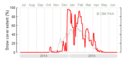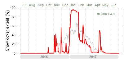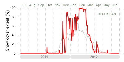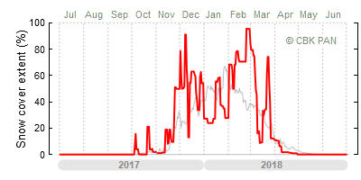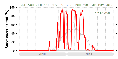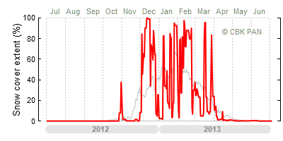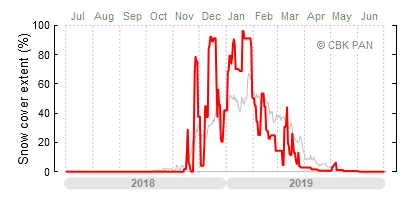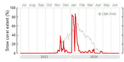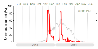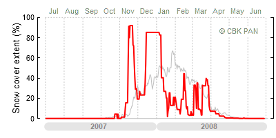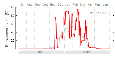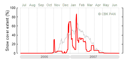 A mild winter is one where snow cover appears and quickly disappears, only occasionally covering more than 80-90 percent of the country. A good example of such a situation is the winter in Poland during the 2006/07 season, when snow appeared on a larger scale only at the turn of January and February.