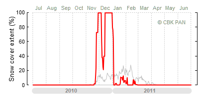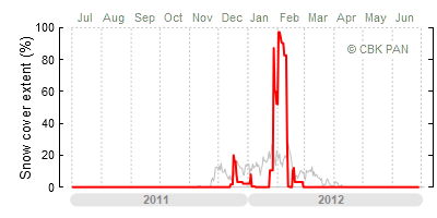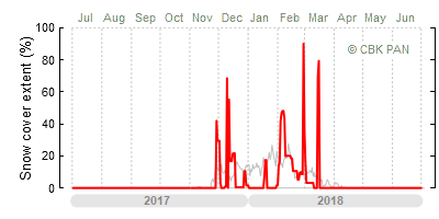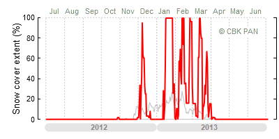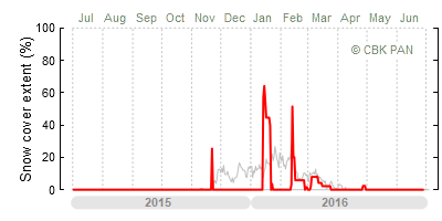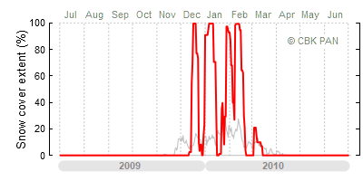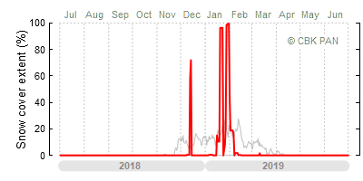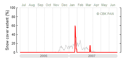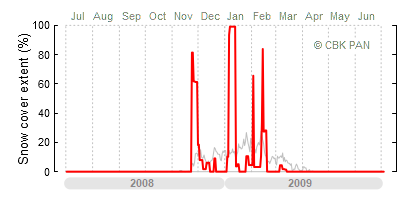 A mild winter is one where snow cover appears and quickly disappears, only occasionally covering more than 80-90 percent of the country. A good example of such a situation is the winter in Poland during the 2006/07 season, when snow appeared on a larger scale only at the turn of January and February.