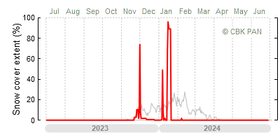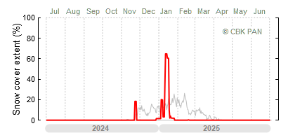 We would call a winter "harsh" if snow cover persisted for a long time and covered the largest possible area of the country. An example of such a situation in Poland is the winter of 2005/06, when snow covered almost the entire country from mid-December until the end of April. This significantly impacted the average for the entire year—statistically, on each day between July 1, 2005, and June 30, 2006, snow cover extended over as much as one-third of Poland!