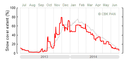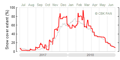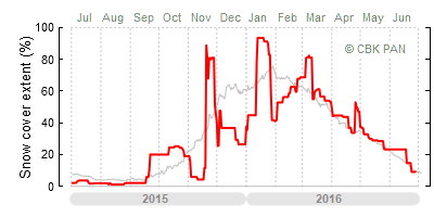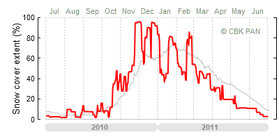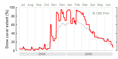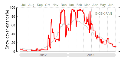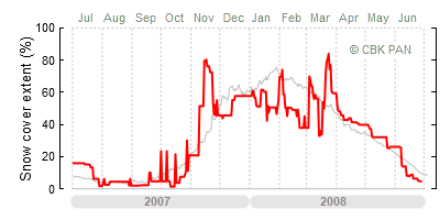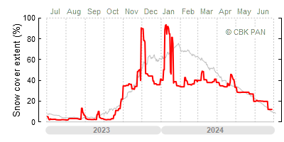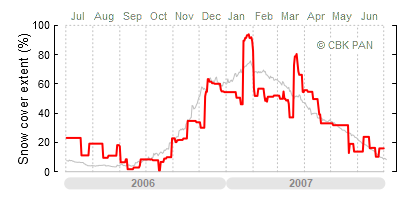 A mild winter is one where snow cover appears and quickly disappears, only occasionally covering more than 80-90 percent of the country. A good example of such a situation is the winter in Poland during the 2006/07 season, when snow appeared on a larger scale only at the turn of January and February.