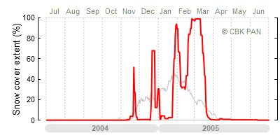 A mild winter is one where snow cover appears and quickly disappears, only occasionally covering more than 80-90 percent of the country. A good example of such a situation is the winter in Poland during the 2006/07 season, when snow appeared on a larger scale only at the turn of January and February.