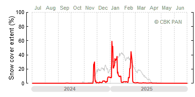 We would call a winter "harsh" if snow cover persisted for a long time and covered the largest possible area of the country. An example of such a situation in Poland is the winter of 2005/06, when snow covered almost the entire country from mid-December until the end of April. This significantly impacted the average for the entire year—statistically, on each day between July 1, 2005, and June 30, 2006, snow cover extended over as much as one-third of Poland!