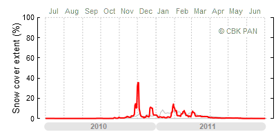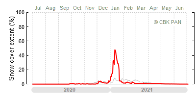 A mild winter is one where snow cover appears and quickly disappears, only occasionally covering more than 80-90 percent of the country. A good example of such a situation is the winter in Poland during the 2006/07 season, when snow appeared on a larger scale only at the turn of January and February.