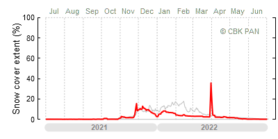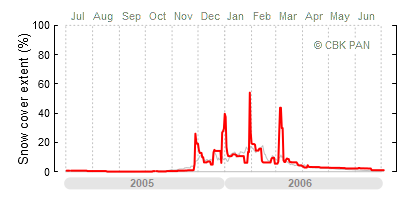 We would call a winter "harsh" if snow cover persisted for a long time and covered the largest possible area of the country. An example of such a situation in Poland is the winter of 2005/06, when snow covered almost the entire country from mid-December until the end of April. This significantly impacted the average for the entire year—statistically, on each day between July 1, 2005, and June 30, 2006, snow cover extended over as much as one-third of Poland!