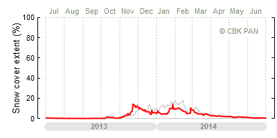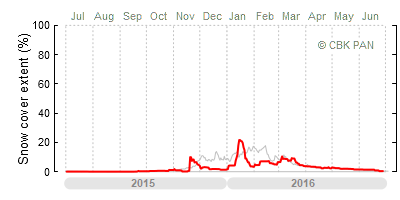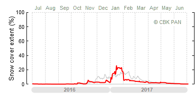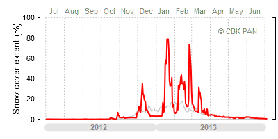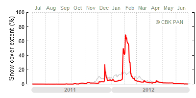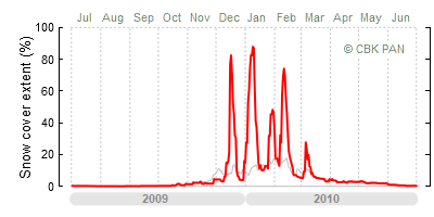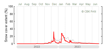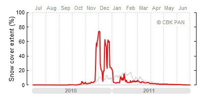 A mild winter is one where snow cover appears and quickly disappears, only occasionally covering more than 80-90 percent of the country. A good example of such a situation is the winter in Poland during the 2006/07 season, when snow appeared on a larger scale only at the turn of January and February.
