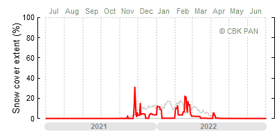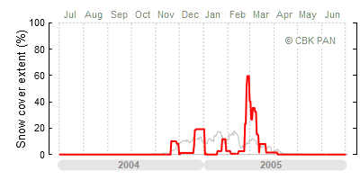 We would call a winter "harsh" if snow cover persisted for a long time and covered the largest possible area of the country. An example of such a situation in Poland is the winter of 2005/06, when snow covered almost the entire country from mid-December until the end of April. This significantly impacted the average for the entire year—statistically, on each day between July 1, 2005, and June 30, 2006, snow cover extended over as much as one-third of Poland!