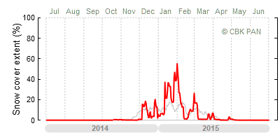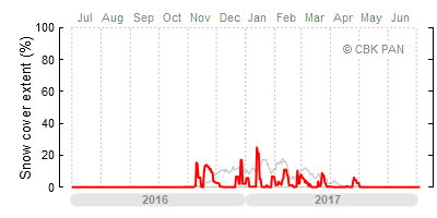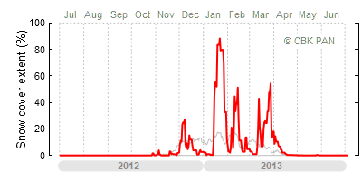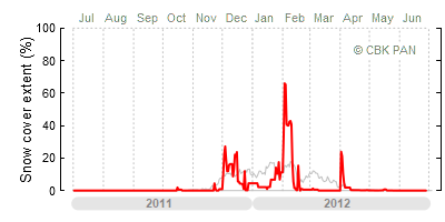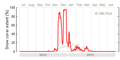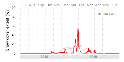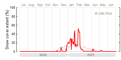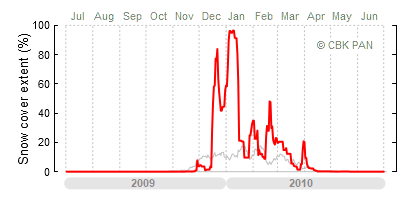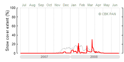 A mild winter is one where snow cover appears and quickly disappears, only occasionally covering more than 80-90 percent of the country. A good example of such a situation is the winter in Poland during the 2006/07 season, when snow appeared on a larger scale only at the turn of January and February.