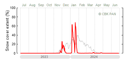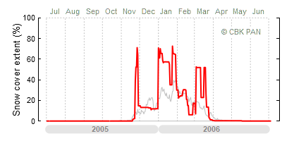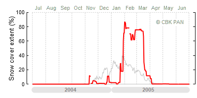 We would call a winter "harsh" if snow cover persisted for a long time and covered the largest possible area of the country. An example of such a situation in Poland is the winter of 2005/06, when snow covered almost the entire country from mid-December until the end of April. This significantly impacted the average for the entire year—statistically, on each day between July 1, 2005, and June 30, 2006, snow cover extended over as much as one-third of Poland!