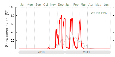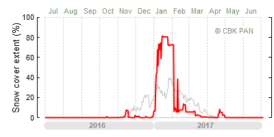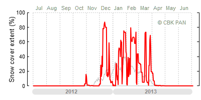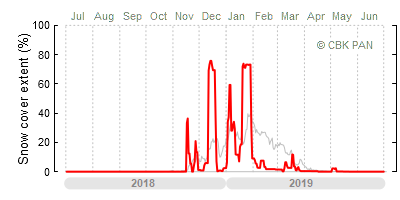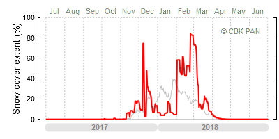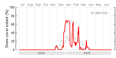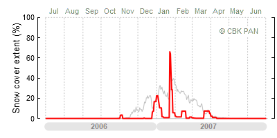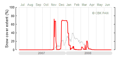 A mild winter is one where snow cover appears and quickly disappears, only occasionally covering more than 80-90 percent of the country. A good example of such a situation is the winter in Poland during the 2006/07 season, when snow appeared on a larger scale only at the turn of January and February.