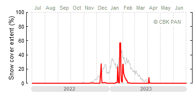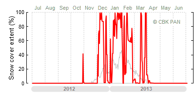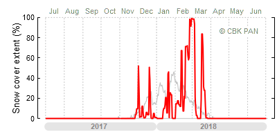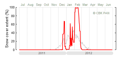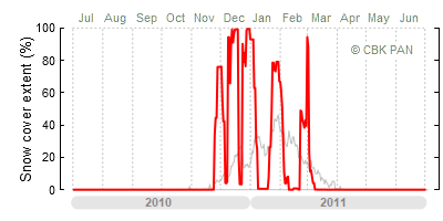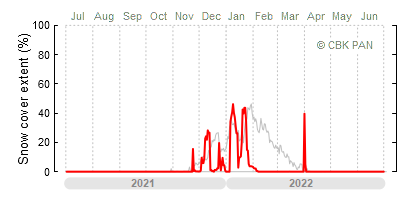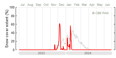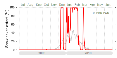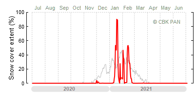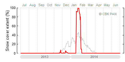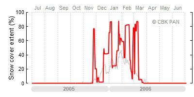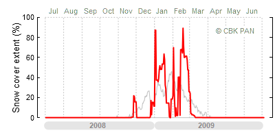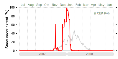 A mild winter is one where snow cover appears and quickly disappears, only occasionally covering more than 80-90 percent of the country. A good example of such a situation is the winter in Poland during the 2006/07 season, when snow appeared on a larger scale only at the turn of January and February.