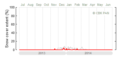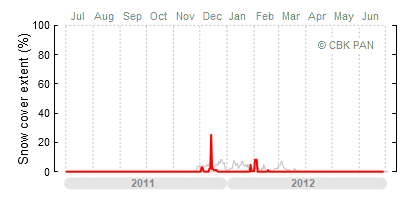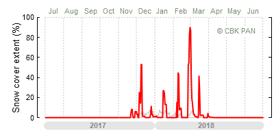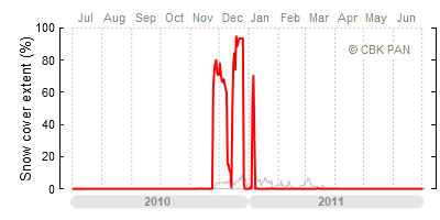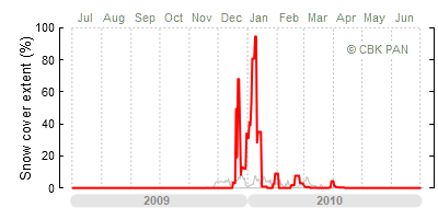 A mild winter is one where snow cover appears and quickly disappears, only occasionally covering more than 80-90 percent of the country. A good example of such a situation is the winter in Poland during the 2006/07 season, when snow appeared on a larger scale only at the turn of January and February.