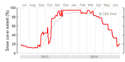 A mild winter is one where snow cover appears and quickly disappears, only occasionally covering more than 80-90 percent of the country. A good example of such a situation is the winter in Poland during the 2006/07 season, when snow appeared on a larger scale only at the turn of January and February.