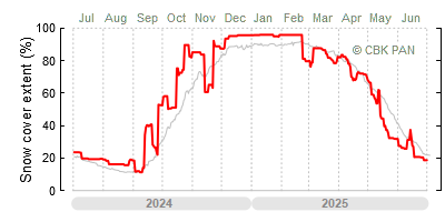 We would call a winter "harsh" if snow cover persisted for a long time and covered the largest possible area of the country. An example of such a situation in Poland is the winter of 2005/06, when snow covered almost the entire country from mid-December until the end of April. This significantly impacted the average for the entire year—statistically, on each day between July 1, 2005, and June 30, 2006, snow cover extended over as much as one-third of Poland!