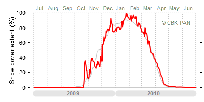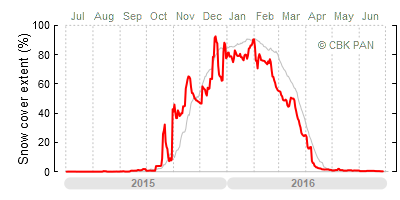 A mild winter is one where snow cover appears and quickly disappears, only occasionally covering more than 80-90 percent of the country. A good example of such a situation is the winter in Poland during the 2006/07 season, when snow appeared on a larger scale only at the turn of January and February.