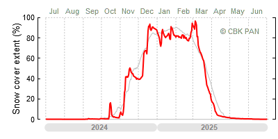 We would call a winter "harsh" if snow cover persisted for a long time and covered the largest possible area of the country. An example of such a situation in Poland is the winter of 2005/06, when snow covered almost the entire country from mid-December until the end of April. This significantly impacted the average for the entire year—statistically, on each day between July 1, 2005, and June 30, 2006, snow cover extended over as much as one-third of Poland!