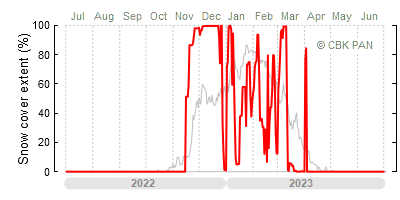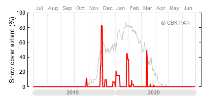 A mild winter is one where snow cover appears and quickly disappears, only occasionally covering more than 80-90 percent of the country. A good example of such a situation is the winter in Poland during the 2006/07 season, when snow appeared on a larger scale only at the turn of January and February.