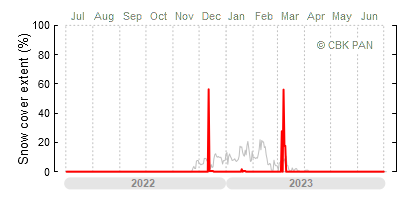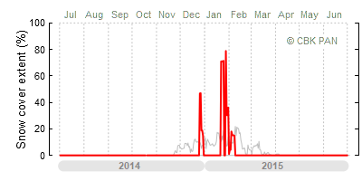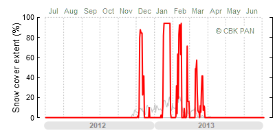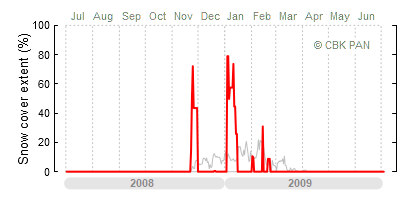 A mild winter is one where snow cover appears and quickly disappears, only occasionally covering more than 80-90 percent of the country. A good example of such a situation is the winter in Poland during the 2006/07 season, when snow appeared on a larger scale only at the turn of January and February.