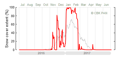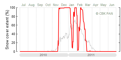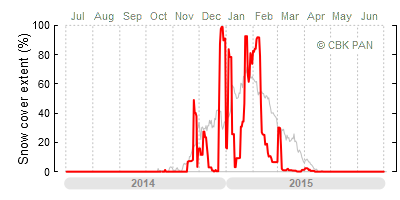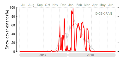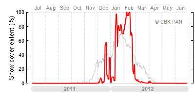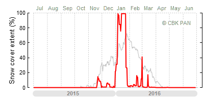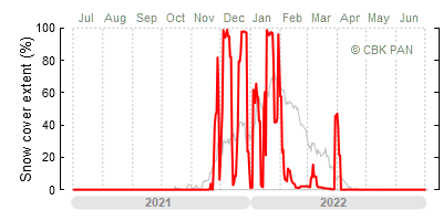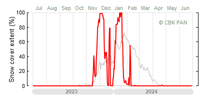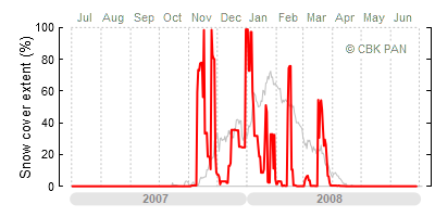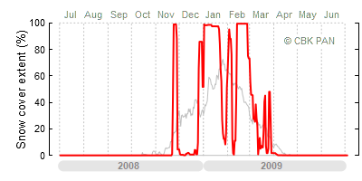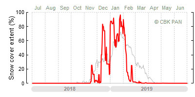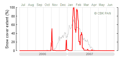 A mild winter is one where snow cover appears and quickly disappears, only occasionally covering more than 80-90 percent of the country. A good example of such a situation is the winter in Poland during the 2006/07 season, when snow appeared on a larger scale only at the turn of January and February.
