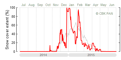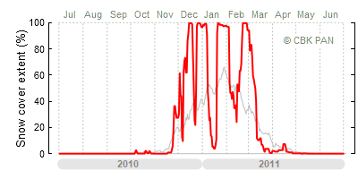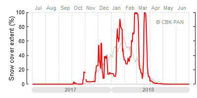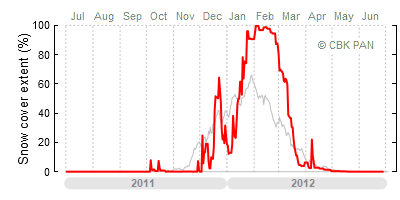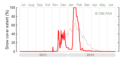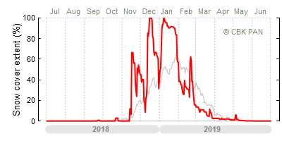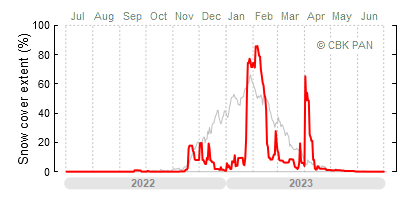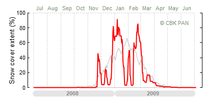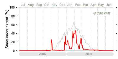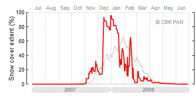 A mild winter is one where snow cover appears and quickly disappears, only occasionally covering more than 80-90 percent of the country. A good example of such a situation is the winter in Poland during the 2006/07 season, when snow appeared on a larger scale only at the turn of January and February.