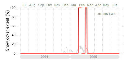 We would call a winter "harsh" if snow cover persisted for a long time and covered the largest possible area of the country. An example of such a situation in Poland is the winter of 2005/06, when snow covered almost the entire country from mid-December until the end of April. This significantly impacted the average for the entire year—statistically, on each day between July 1, 2005, and June 30, 2006, snow cover extended over as much as one-third of Poland!