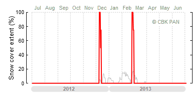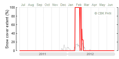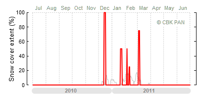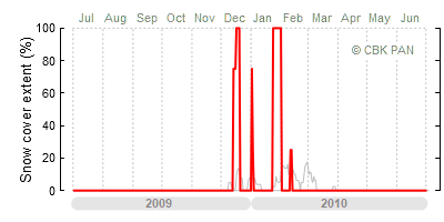 A mild winter is one where snow cover appears and quickly disappears, only occasionally covering more than 80-90 percent of the country. A good example of such a situation is the winter in Poland during the 2006/07 season, when snow appeared on a larger scale only at the turn of January and February.